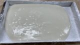 熱を冷ましていきますが『水無月』は表面が皮張りしやすいので、なるべく風の当たらないところで冷ましていきます。粗熱が抜けたら、蒸枠をはがします。
